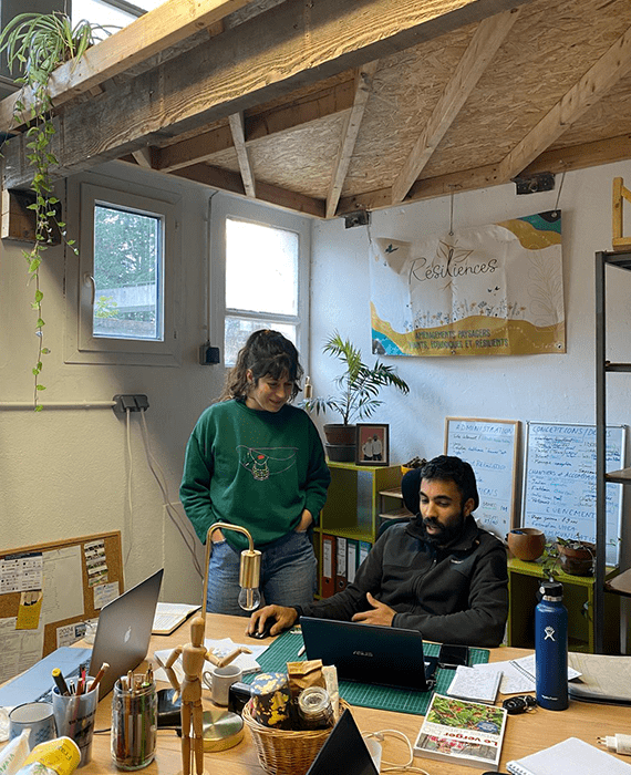 Au bout d’une année de réunions, la société Résiliences est créée (en décembre 2021) à 3 associés co-gérants : Jean-Philippe, Matisse et Thibault. Pour des raisons personnelles, ces deux derniers quittent l’aventure lorsque Louise-Eline Uzu arrive, en septembre 2023.